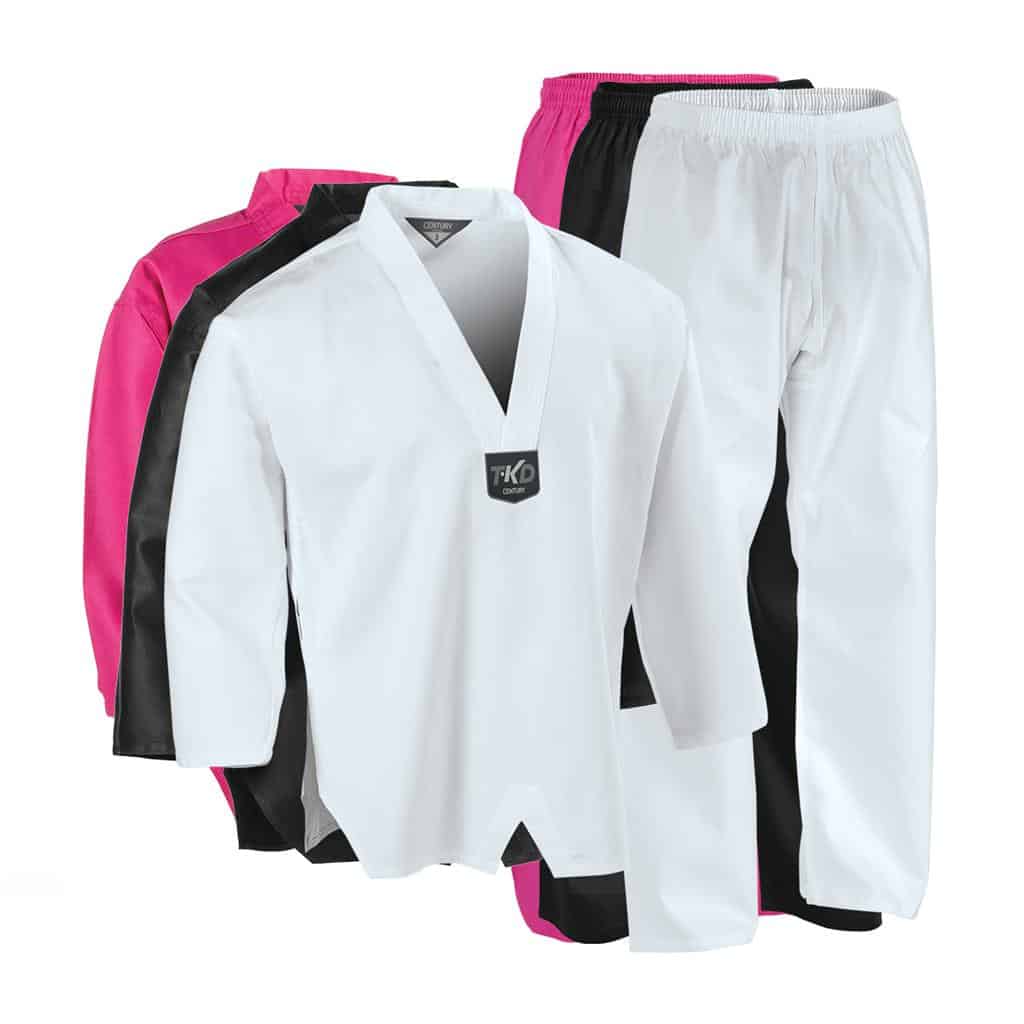 This lightweight, 6 oz. traditional taekwondo uniform provides a sharp, classic look with a V-neck, pullover jacket. The 1.5-inch elastic waist pants have a three-piece gusseted crotch for increased mobility. Made of a cotton-polyester blend. Imported.