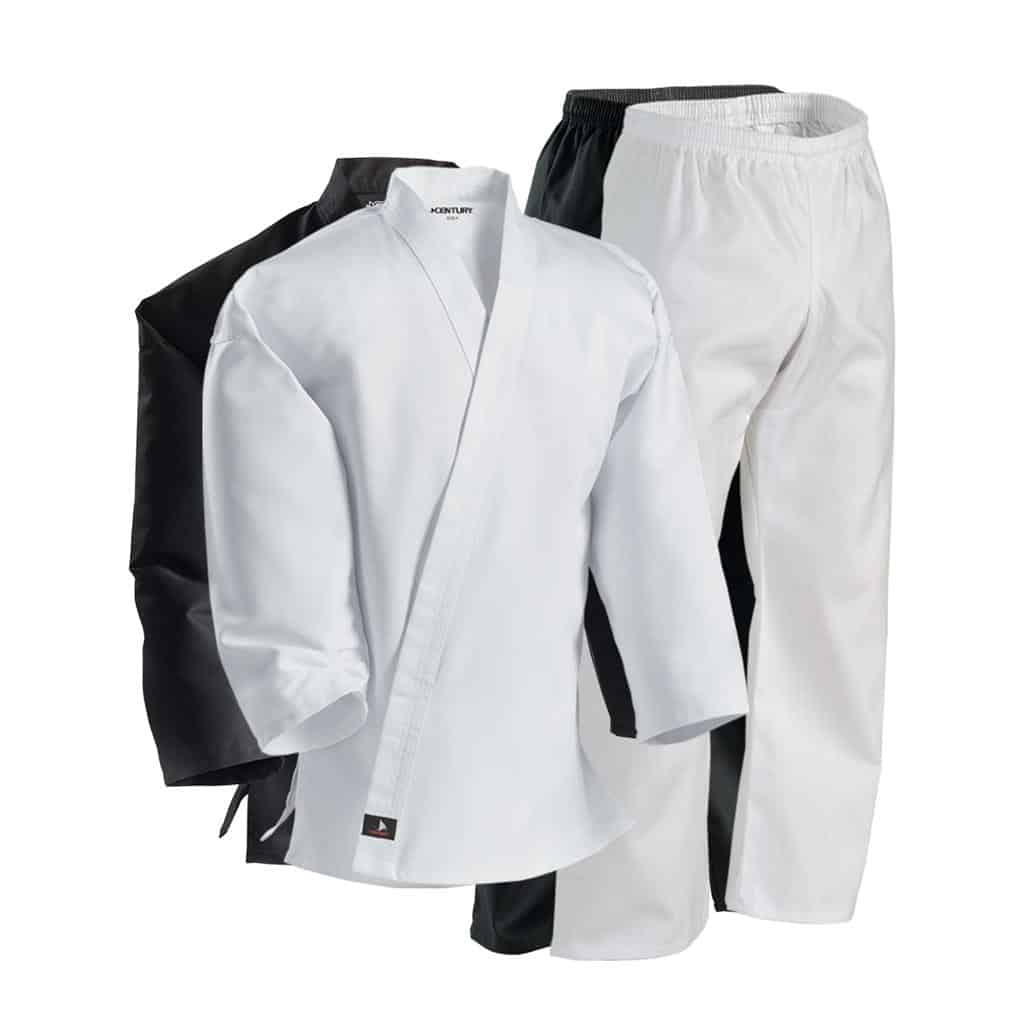A traditional uniform made with 7 oz. middleweight cotton-polyester fabric for increased durability and easy care. Jacket is full-cut, while the pants feature a drawstring waist with a generous gusset. White belt included with purchase. Imported.