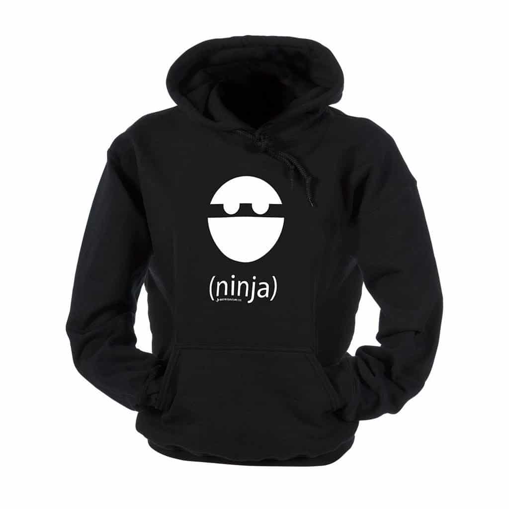 This black hoodie is made of 50% cotton and 50% polyester, screenprinted with a bold design. Machine washable and available in adult sizes. USA/Imported