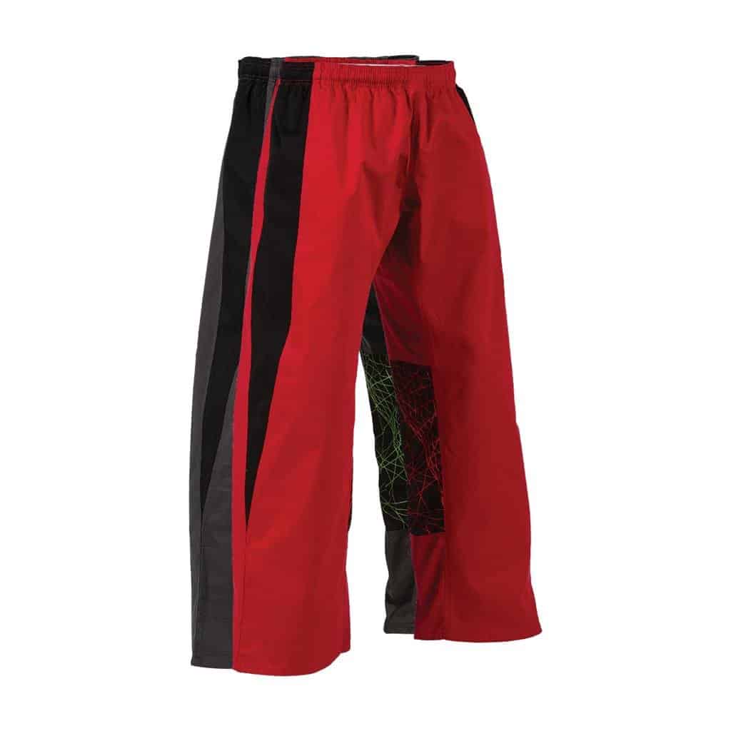 These crossover uniform pants feature a unique design with electric line accents along the sides. Ideal for training and competitions, the pants are made of cotton/spandex blend with an elastic waist for a comfortable secure fit.
