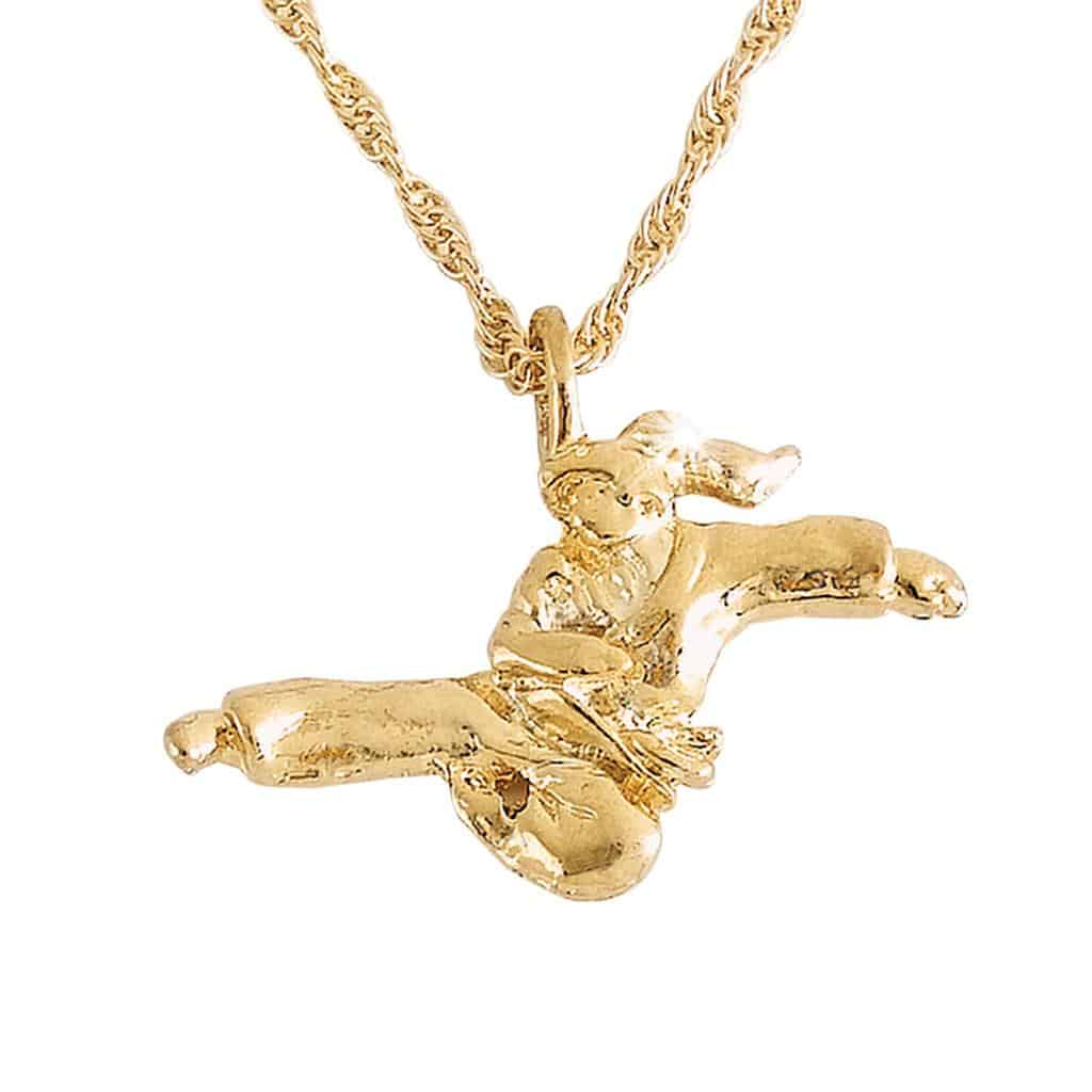 This 14K gold plated, metal necklace comes complete with an 18-inch chain. Imported