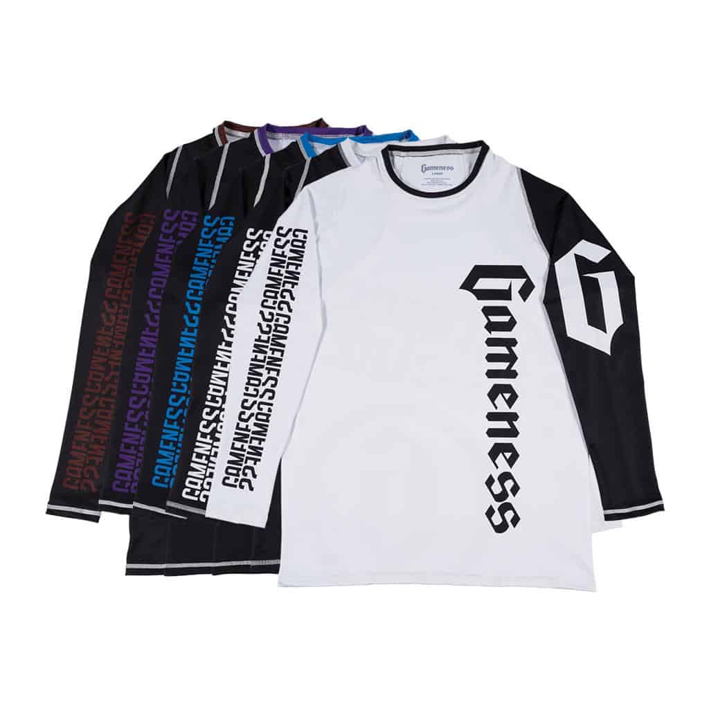 The Gameness Pro Rank Rash Guard features comfortable and strong flat lock stitching, dyed-into-the-fiber graphics that will never peel or fade, and moisture wicking fabric.