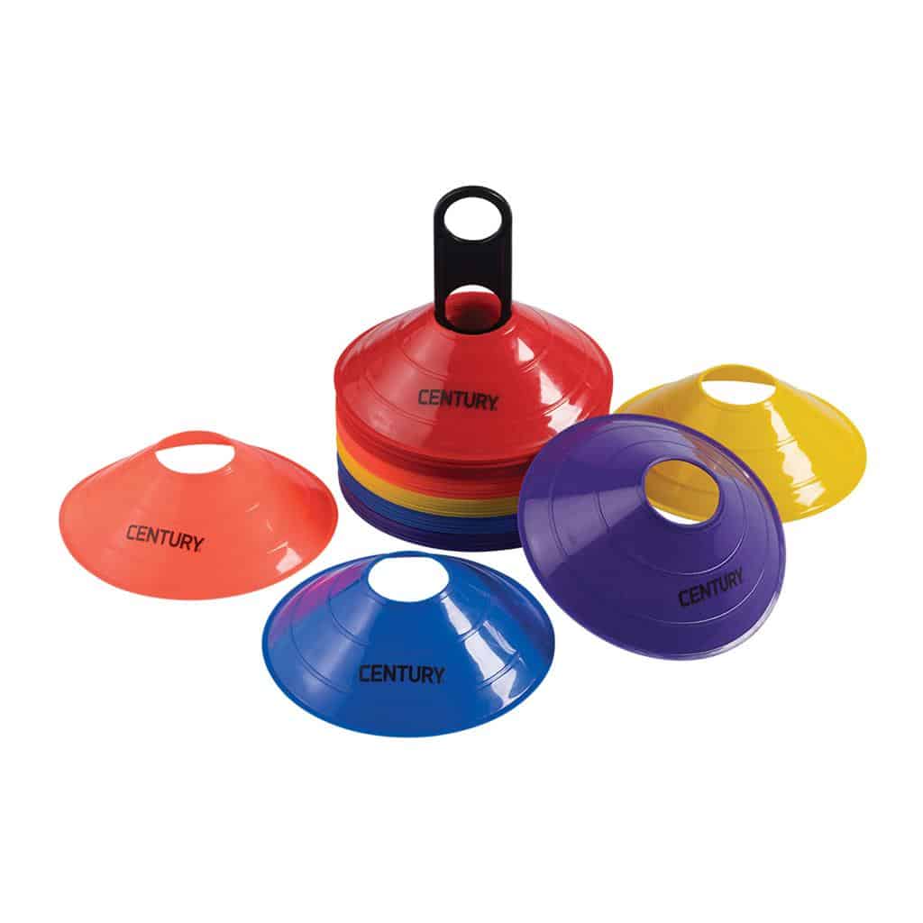 These colorful cones are great for drills that build agility and speed, and can also be used for games that test memory and a child’s listening skills. Sold in packs of 50, the 9″ cones feature PVC construction.